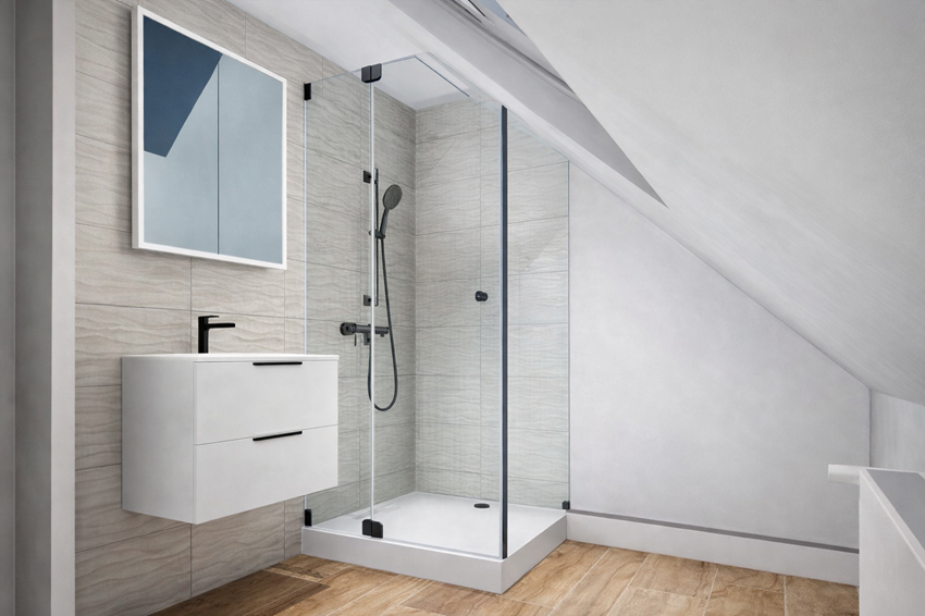 Bei diesem Projekt wurde ein Badezimmer im Dachgeschoss vollständig modernisiert und neu gestaltet. Ziel war es, den vorhandenen Raum optimal zu nutzen um ein funktionales, modernes und zugleich gemütliches Badezimmer zu schaffen.